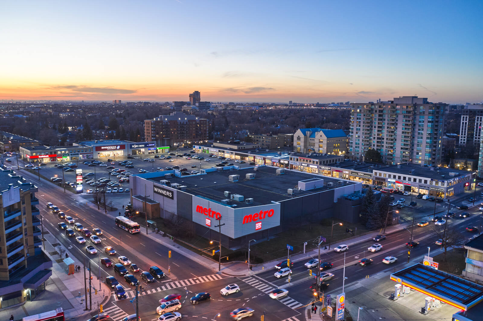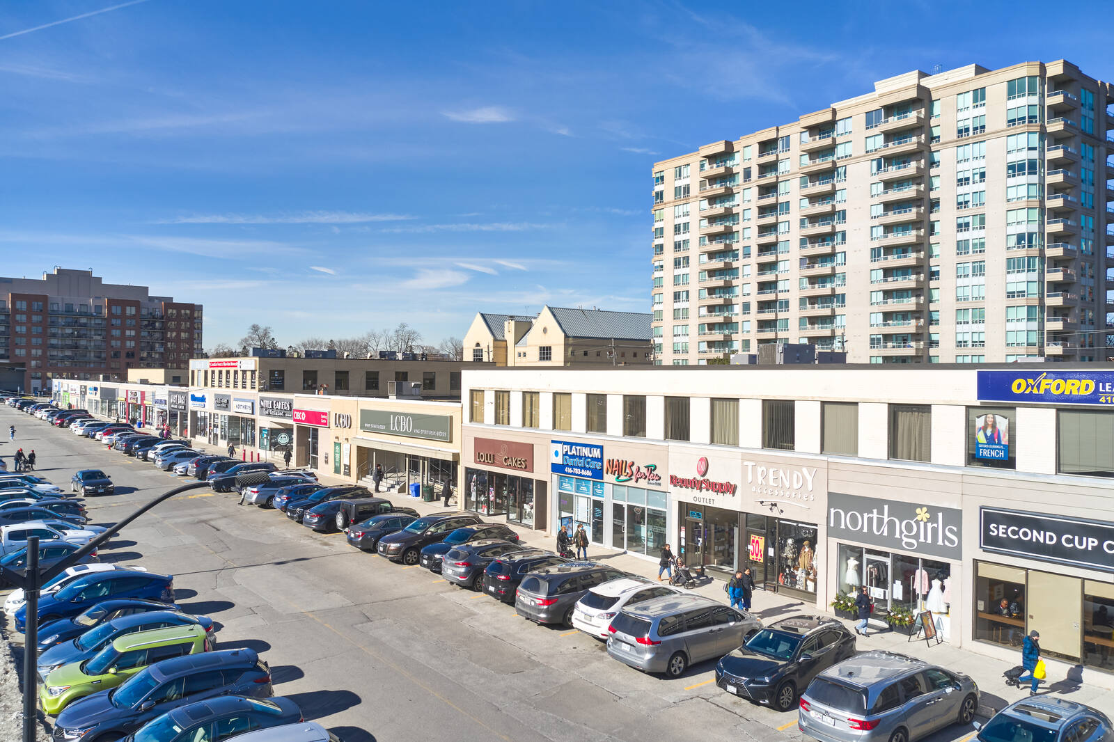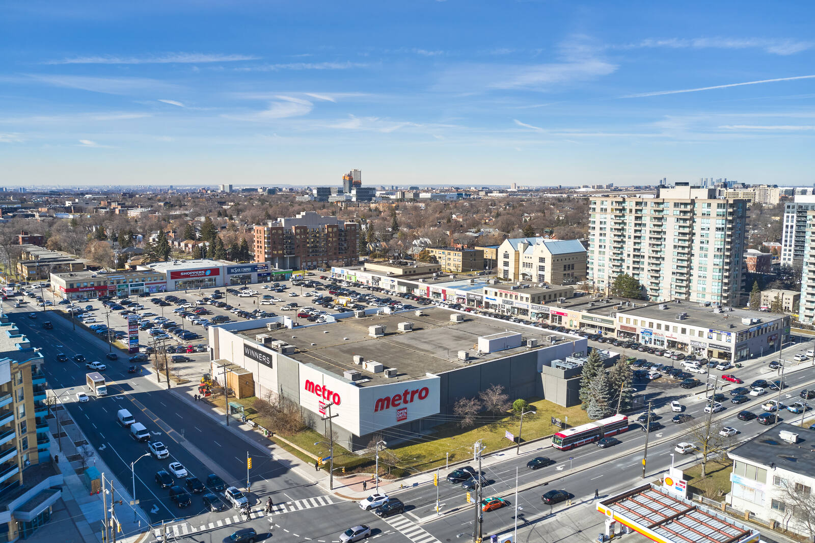 The unenclosed centre offers 50 stores and services, including TD Canada Trust, CIBC, Scotiabank, LCBO, Metro, Shoppers Drug Mart, Winners.
