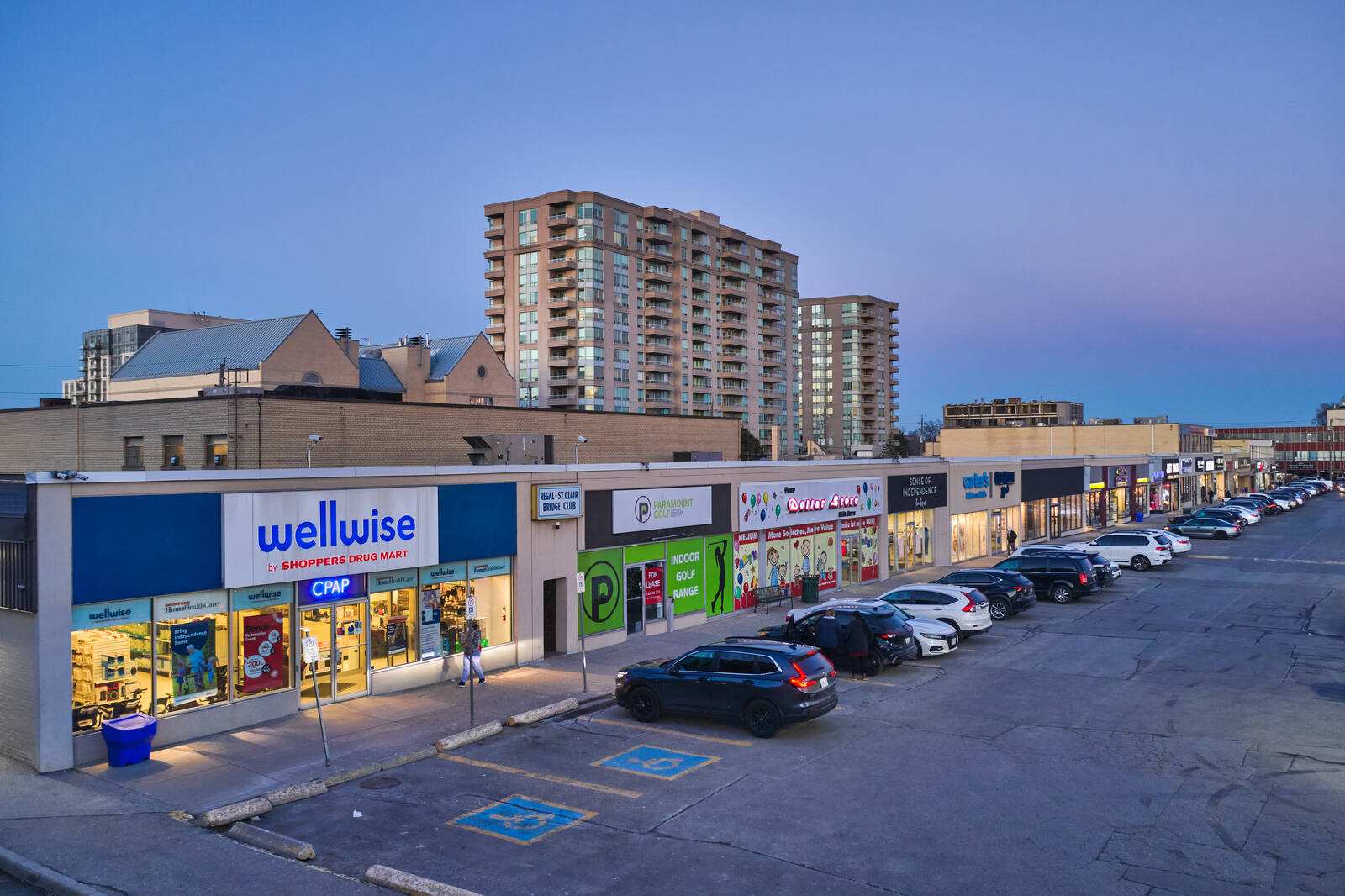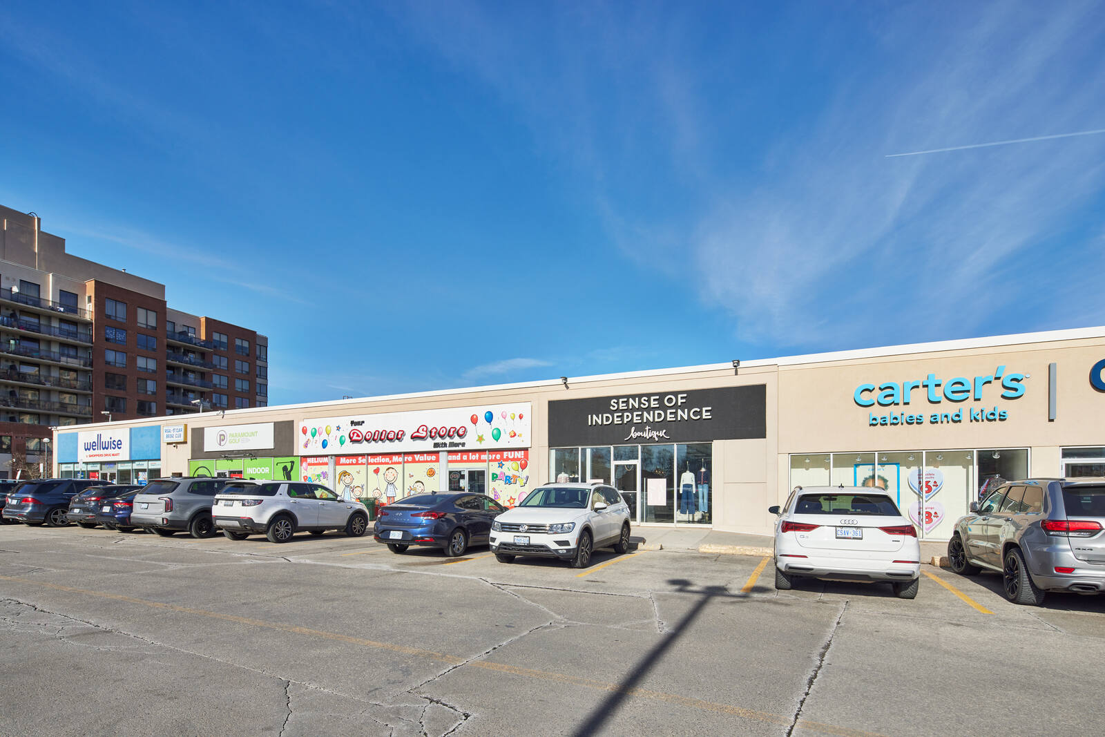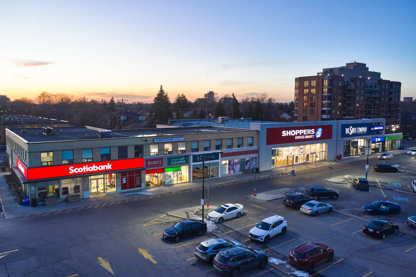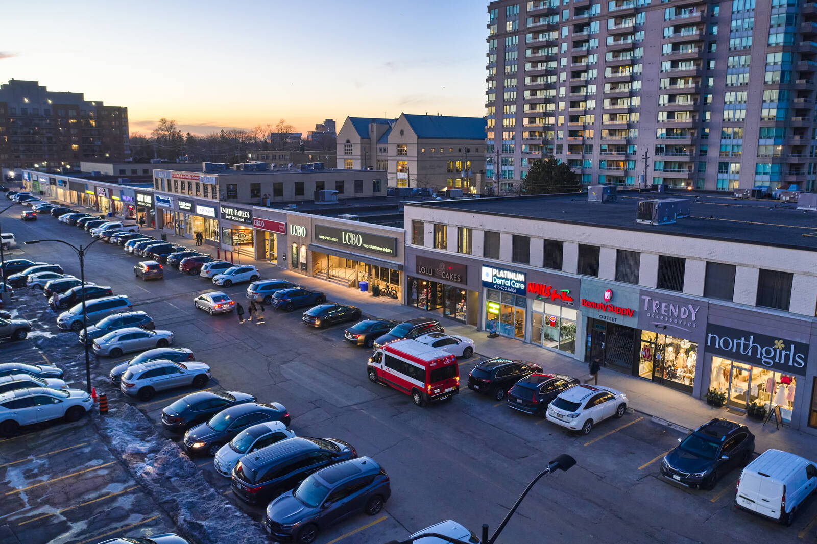 The unenclosed centre offers 50 stores and services, including TD Canada Trust, CIBC, Scotiabank, LCBO, Metro, Shoppers Drug Mart, Winners.
