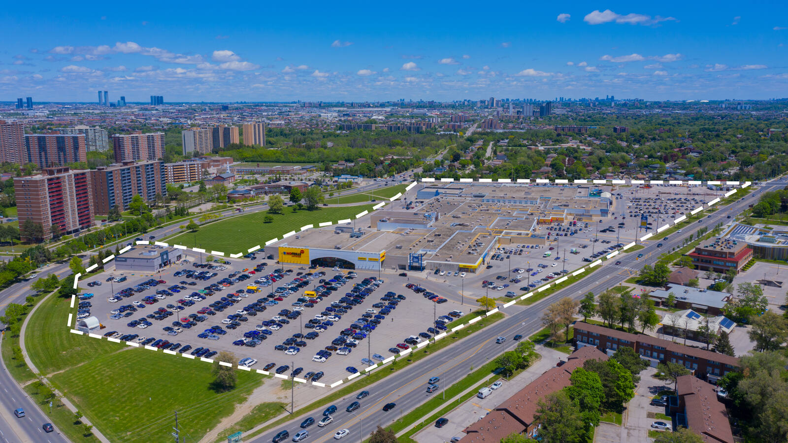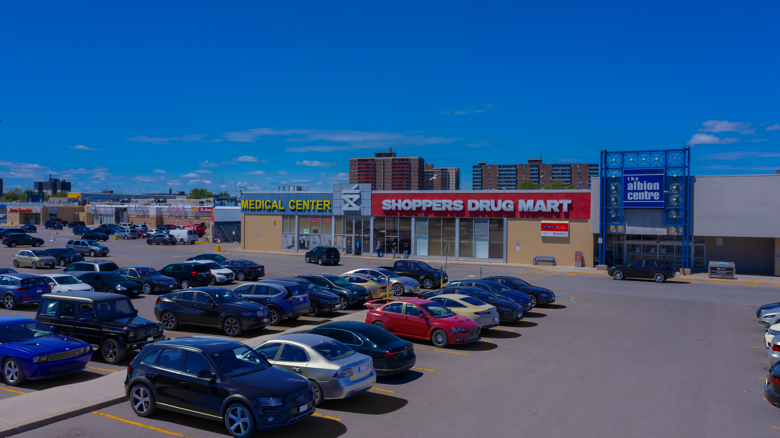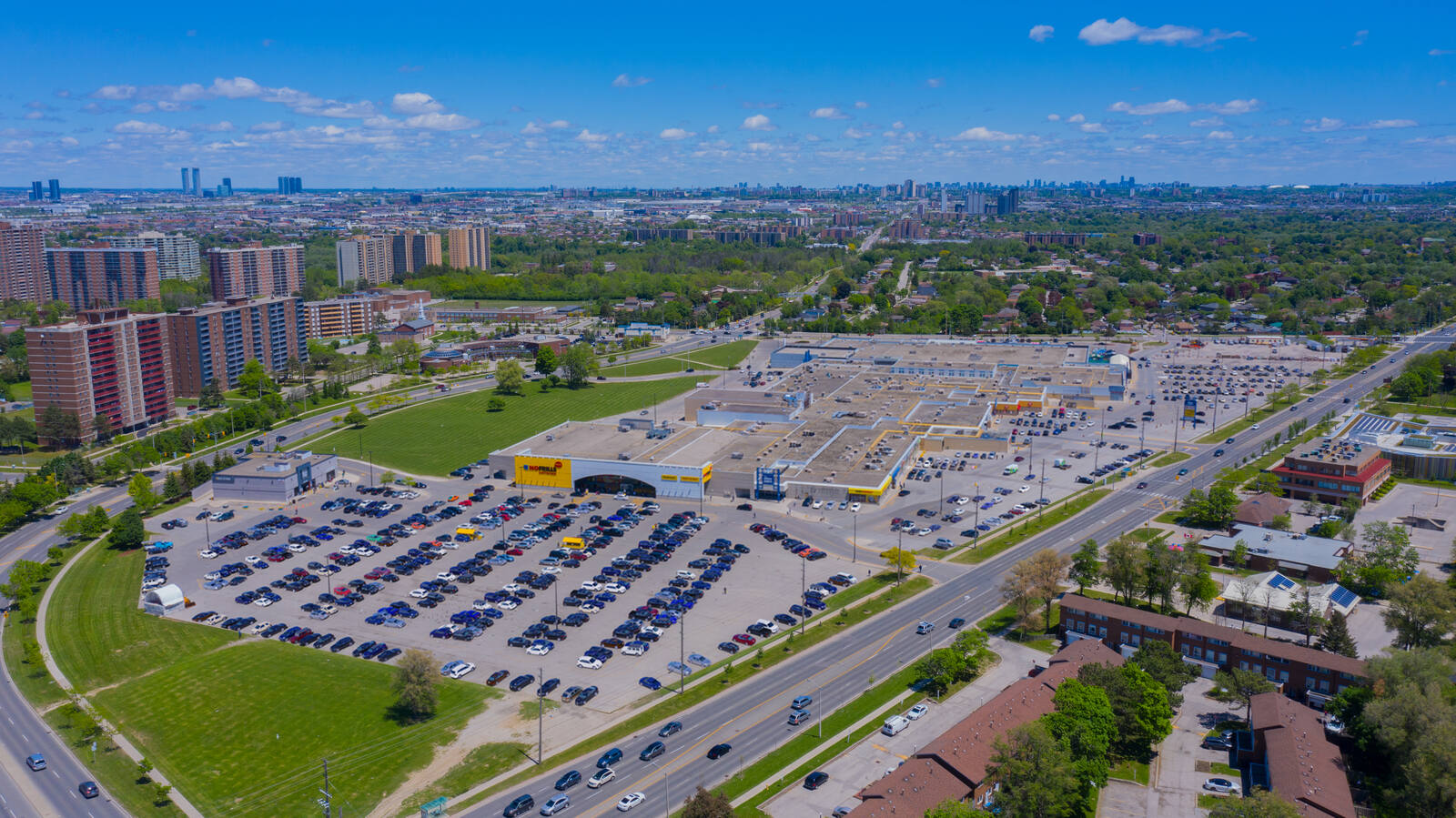 Located at the intersection of Albion Road, Kipling Road and Finch Avenue in Etobicoke, this enclosed shopping centre offers 123 units totalling 376,579 sq. ft featuring retailers such as Canadian Tire, No Frills, LCBO, Shoppers Drug Mart and The Beer Store.